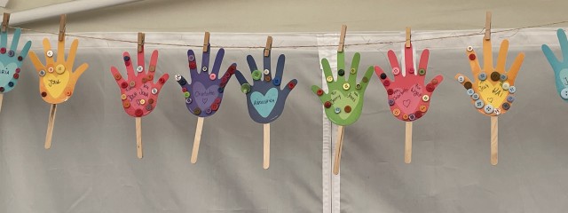 Welcome back to the new Tivoli school year. We are happy to wave hello to everyone with our buttoned hello hands.