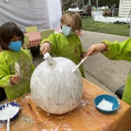 We celebrated Tivoli fathers at the park with special Father’s Day verses and dancing in the circle. The dads loved it. It was the first time in a long time that we could see the smiles on their faces, because the mask requirement was lifted just the day before. The children decorated special lunch bags with hand and foot prints and filled the yummy lunch bags with apples and pretzel sandwiches, made by the children.